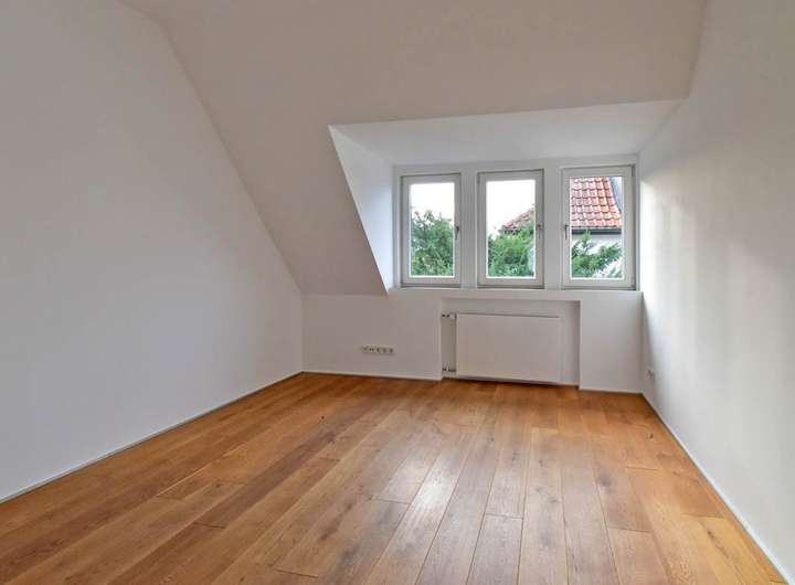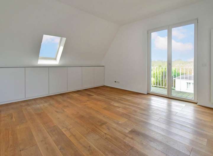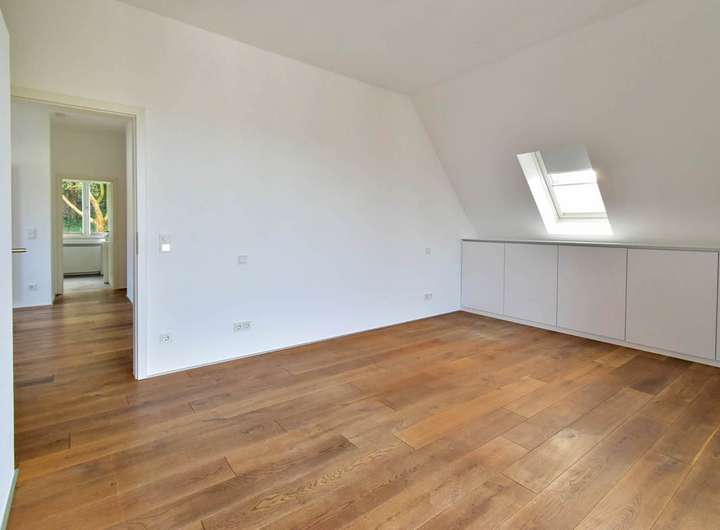 Dachgeschoss: Diele, die den Elternbereich mit Ankleide ensuite, zwei weitere, großzügige Zimmer und ein komfortables Tageslichtbad erschließt.