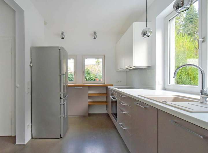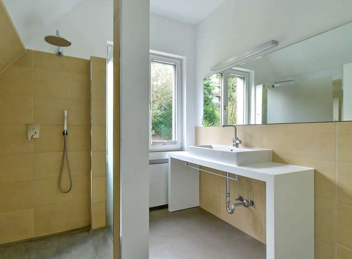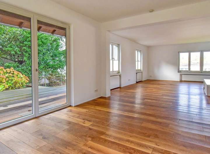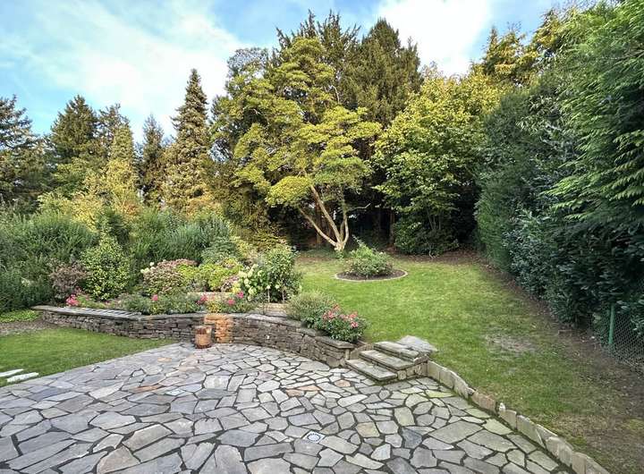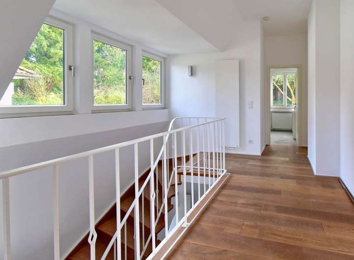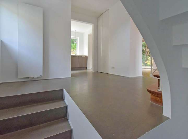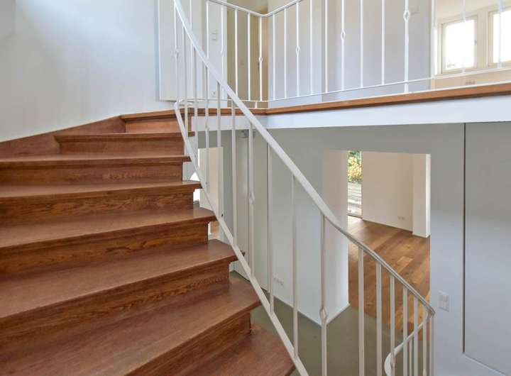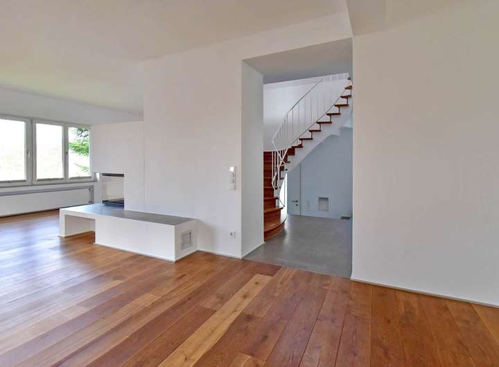 Das Haus wurde vor etwa zehn Jahren von der jetzigen Eigentümerfamilie einer ebenso grundlegenden, wie sorgfältigen Überarbeitung unterzogen, die unter Respekt für das Errichtungsjahr und seine Gestaltungselemente mit viel Sachverstand und Liebe zum Detail erfolgte. Die Wohnfläche verteilt sich im Wesentlichen auf zwei Ebenen, ergänzt von einem geräumigen Bereich mit eigenem Bad im Gartengeschoss.
