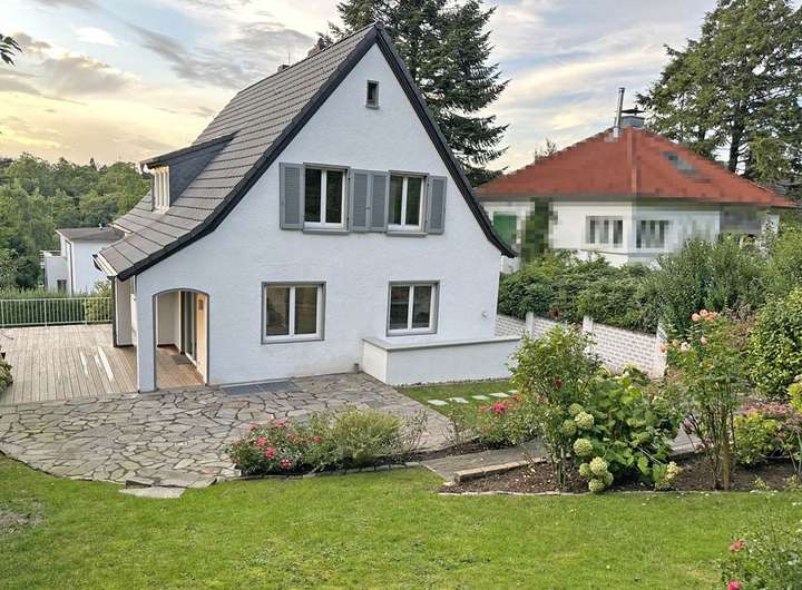 Das schon auf den ersten Blick sehr hübsche, charmante Haus liegt auf einem fast 700 m² großen Grundstück im Bereich Weg zur Platte / Wolfsbachweg. Mit seiner Position etwas oberhalb des Straßenniveaus genießt es Licht, Luft und Privatsphäre sowohl von vorne als auch von der Gartenseite aus.