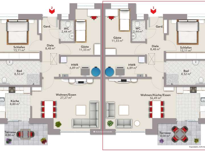 Wir freuen uns, Ihnen dieses moderne und energieeffiziente Neubauprojekt in Vechta vorzustellen. Diese Doppelhaushälfte wird nach den höchsten Standards der KfW 40 errichtet, was Ihnen nicht nur eine nachhaltige, sondern auch kostengünstige Lebensweise ermöglicht. Energieeffizienz und Nachhaltigkeit KfW 40 Standard: Ihr neues Zuhause wird massiv und nach den strengen KfW 40 Standards gebaut, was eine hervorragende Energieeffizienz gewährleistet. Wärmepumpe: Die Wärmepumpe sorgt für eine umweltfreundliche und kostengünstige Heizung und Warmwasserbereitung. Photovoltaikanlage: Mit der integrierten Photovoltaikanlage produzieren Sie Ihren eigenen Strom und reduzieren Ihre Energiekosten nachhaltig. Lüftungsanlage: Eine moderne Lüftungsanlage sorgt für ein gesundes Raumklima und minimiert den Energieverbrauch. Schlüsselfertige Erstellung Ihr neues Zuhause wird schlüsselfertig erstellt, sodass Sie nur die Maler- und Bodenbelagsarbeiten übernehmen müssen. Die Fliesen werden von uns verlegt, Sie haben Einfluss auf die Auswahl der Fliesen. So können Sie Ihr neues Zuhause ganz nach Ihren Vorstellungen gestalten. Geringe Nebenkosten Durch die Kombination aus KfW 40 Standard, Wärmepumpe, Photovoltaikanlage und Lüftungsanlage profitieren Sie von geringen Nebenkosten. Sie sparen nicht nur Energie, sondern auch Geld – und das von Anfang an. Fazit Diese Doppelhaushälfte in Vechta ist die perfekte Kombination aus moderner Architektur, Energieeffizienz und Nachhaltigkeit. Mit geringen Nebenkosten und der Möglichkeit, Ihr Zuhause nach Ihren Wünschen zu gestalten, bietet Ihnen dieses Projekt ein Stück Lebensqualität, das Sie sich verdient haben. Wir freuen uns darauf, Sie bei der Verwirklichung Ihres Traums von den eigenen vier Wänden zu unterstützen. Kontaktieren Sie uns noch heute für weitere Informationen und eine persönliche Beratung!