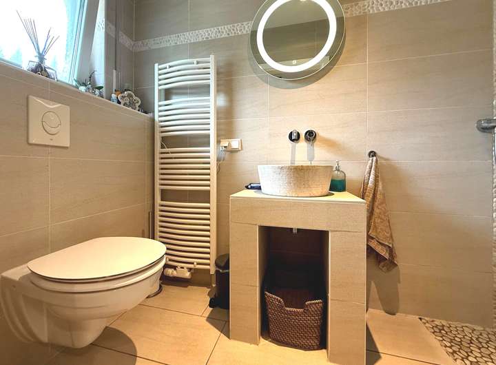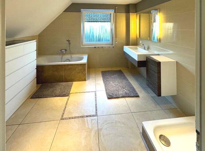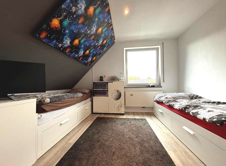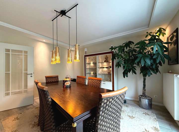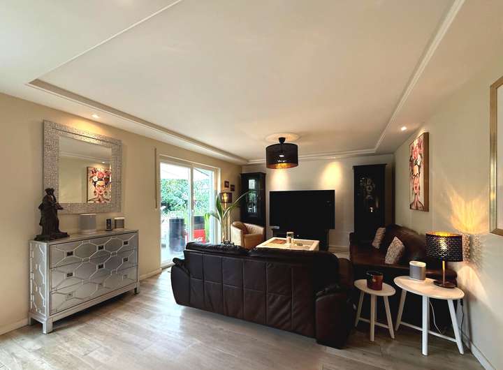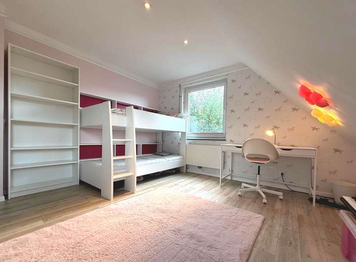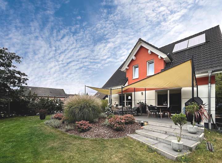 • Wohnfläche: ca. 187,30 m² (darin enthalten sind ca. 64,29 m² wohnlich ausgebaute Nutzfläche) • Grundstück: ca. 695 m² • Baujahr 2011 • 7 Zimmer, davon 4 Schlafzimmer • 2 Badezimmer • Sonnige Terrasse mit Zugang zum eigenen Garten • Eigenes Heimkino im Kellergeschoss • Glasfaser mit bis zu 1 Gigabit • Carport sowie zusätzlicher Stellplatz auf dem Grundstück • Dreifach verglaste Fenster • Hohe Energieeffizienz • Gasheizung in Kombination mit Solaranlage für Warmwasser • Moderne CAT7-Verkabelung im gesamten Haus