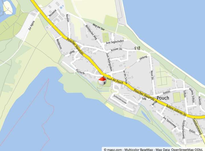 Die Gemeinde Pouch liegt direkt am Großen Goitzschesee, der mit seinen rund 25 km² Wasserfläche alle Vorrausetzungen für ein erholsames Wohnen im Ferienambiente bietet. Das Westufer des Sees bietet ideale Voraussetzungen, um den Blick auf das Wasser und die Sonne genießen zu können.