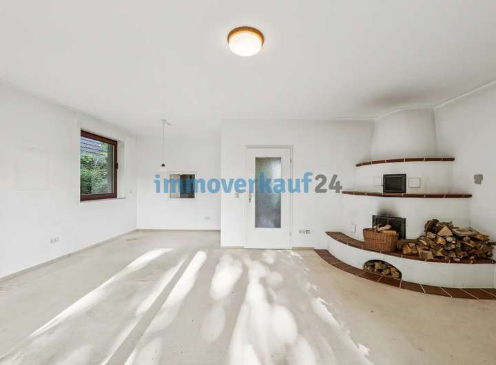Schon beim Betreten des Hauses wird deutlich, dass die Raumaufteilung durchdacht und familienfreundlich ist. Alle Zimmer sind großzügig geschnitten und bieten viel Platz für individuelle Wohnideen. Das Herzstück des Hauses bildet das helle Wohnzimmer mit großflächigen Fenstern und direktem Zugang zum Garten. Hier sorgt ein gemütlicher Kamin an kühlen Tagen für eine behagliche Atmosphäre. Eine weitere Besonderheit ist die charmante Durchreiche zur Küche – ein nostalgisches Detail, das nicht nur praktisch ist, sondern auch den Charakter des Hauses unterstreicht. Die Küche selbst ist aktuell nicht vorhanden und kann ganz nach den persönlichen Wünschen und Vorstellungen der neuen Eigentümer eingebaut werden.