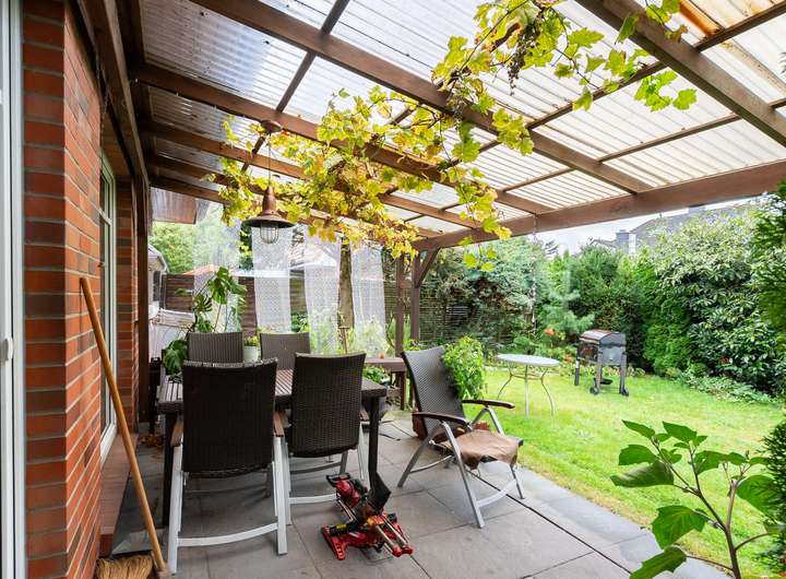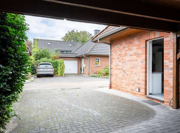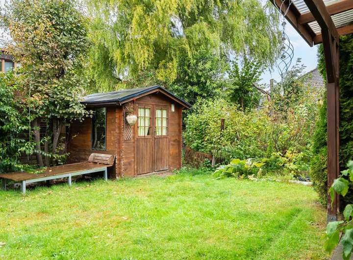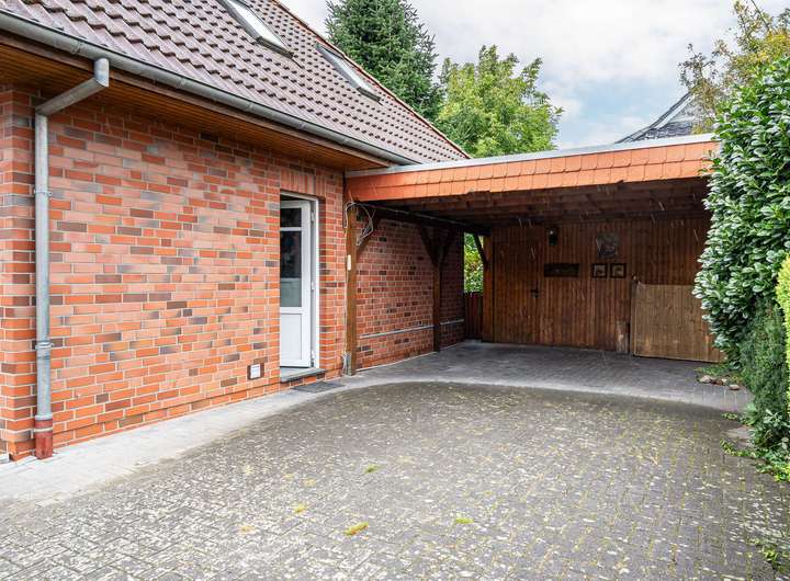 Der Garten ist pflegeleicht angelegt und somit auch für Berufstätige oder Vermieter bestens geeignet. Ein Carport mit integriertem Geräteraum rundet das attraktive Gesamtbild dieses Hauses ab.