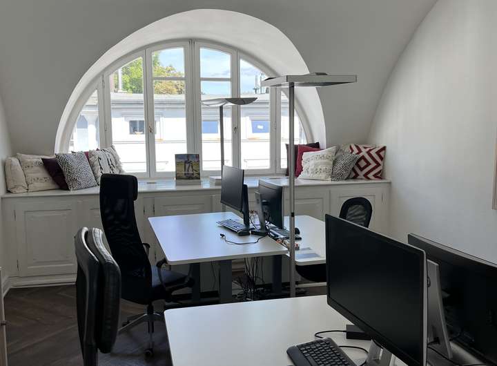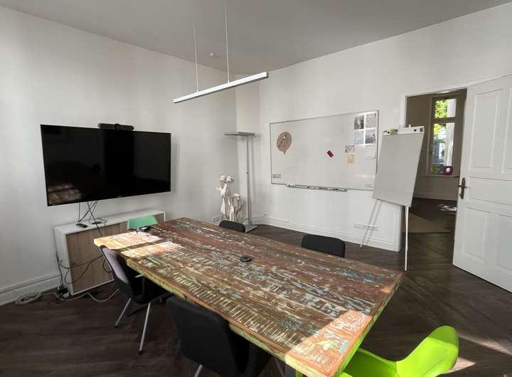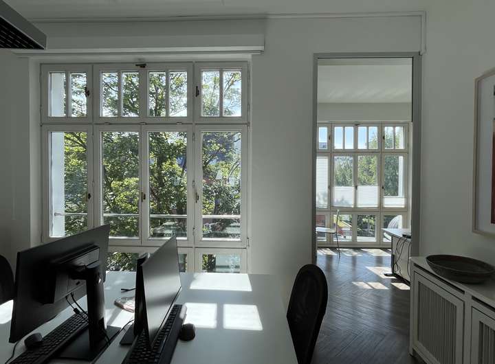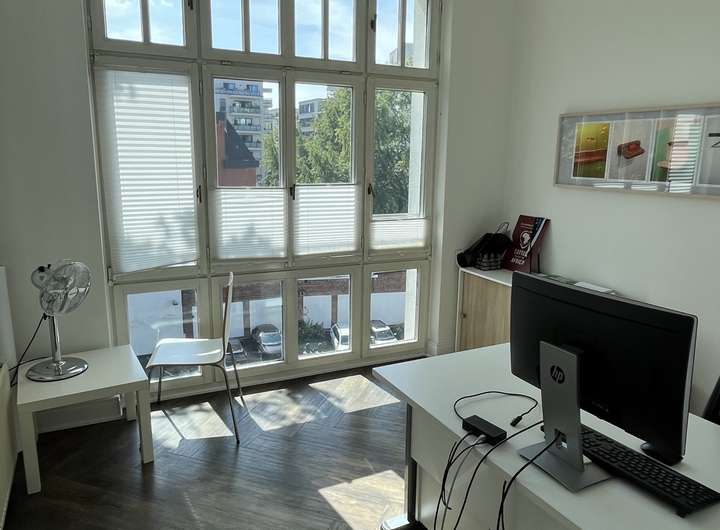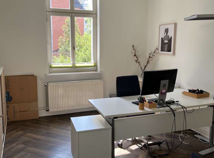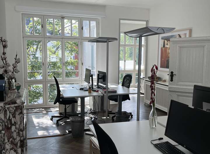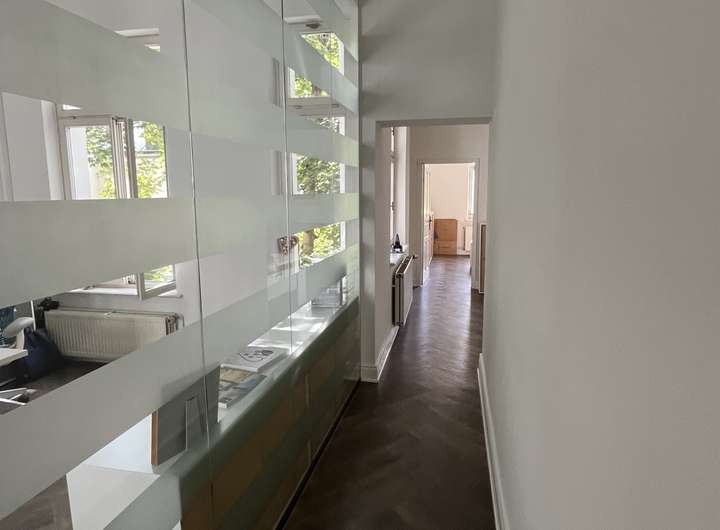 Das Haus erstreckt sich über 4 Etagen (Erdgeschoss bis 3. OG) und verfügt außerdem über ein Kellergeschoss. Die Räumlichkeiten sind großzügig geschnitten und aktuell gibt es eine gemischte Aufteilung, ein Teil der Räume wird als Einzelbüros genutzt und die anderen Räume verfügen über 4 und mehr Arbeitsplätze. Im 2. OG befindet sich eine Küche sowie eine Dachterrasse, die zum rückwärtigen Garten ausgerichtet ist.