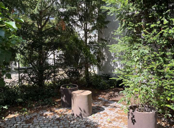 Es gibt einen kleinen Garten, in dem man sich auch eine kleine Sitzecke einrichten kann.