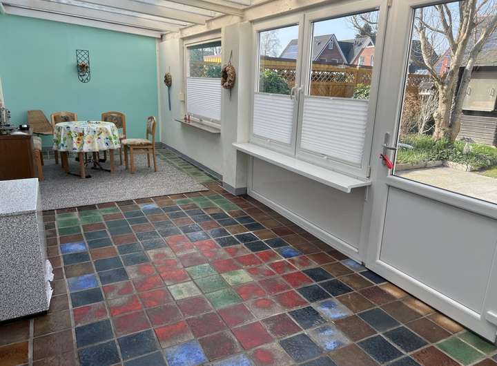 Von der Straße aus gehen Sie geradewegs auf den Eingang der Doppelhaushäflte zu. Durch die Eingangstür gelangen Sie direkt in den lichtdurchfluteten und großen Wintergarten.