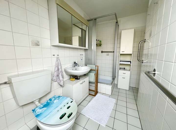 Im Haus kann der vorhandene Ofen mit Holz beheizt werden. Dies sorgt für eine gemütliche Wärme im kompletten Erdgeschoss. Das Badezimmer wurde kürzlich modernisiert, ist barrierefrei ausgestattet und überzeugt mit stilvollem Design sowie bodentiefer Dusche.