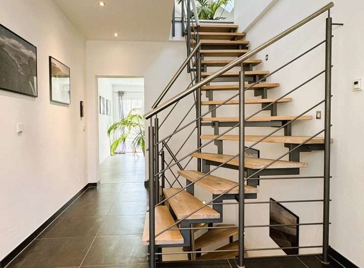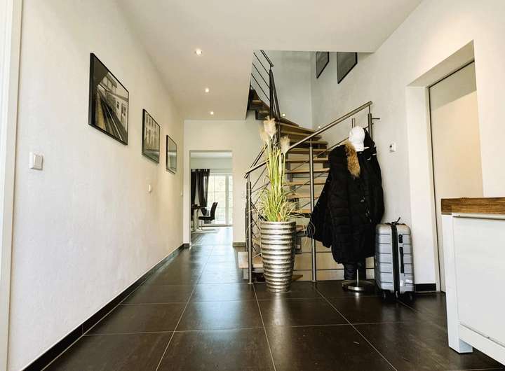 Dieses exklusive Einfamilienhaus, fertiggestellt 2015/2016, überzeugt durch modernes Design, hochwertige Bauqualität und eine zukunftsorientierte Energieversorgung. Auf einer Wohnfläche von ca. 475 m² und einem Grundstück von 710 m² bietet die Immobilie reichlich Platz für Familien, Mehrgenerationenhaushalte oder die Kombination von Wohnen und Arbeiten.