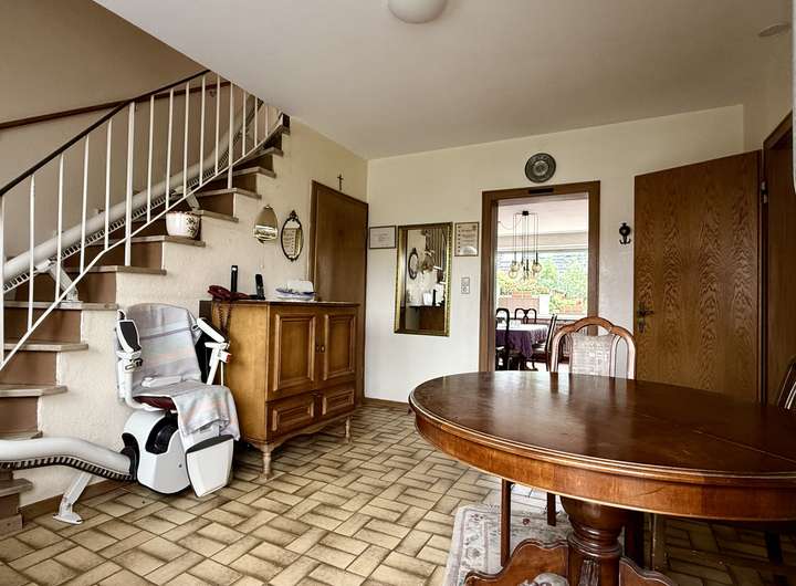 - neuwertiger Wärmeerzeuger/Heizung (2019) - Aufputz-Jalousien im gesamten Erdgeschoss vorhanden - großzügige Terrasse (Südseite) und Rasenfläche im Erdgeschoss - großer Balkon im Obergeschoss zur Gartenseite ausgerichtet - 1 saniertes Badezimmer mit Dusche im Obergeschoss und 2 separate WCs - großzügiger Grundriss mit viel Gestaltungsspielraum - vollständig unterkellert - ausgebautes Dachgeschoss bzw. Spitzboden - Einzelgarage mit elektrischem Tor auf dem Garagenhof inklusive - SAT-Antenne vorhanden - Treppenlift vorhanden