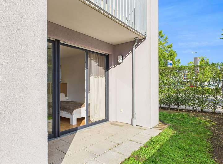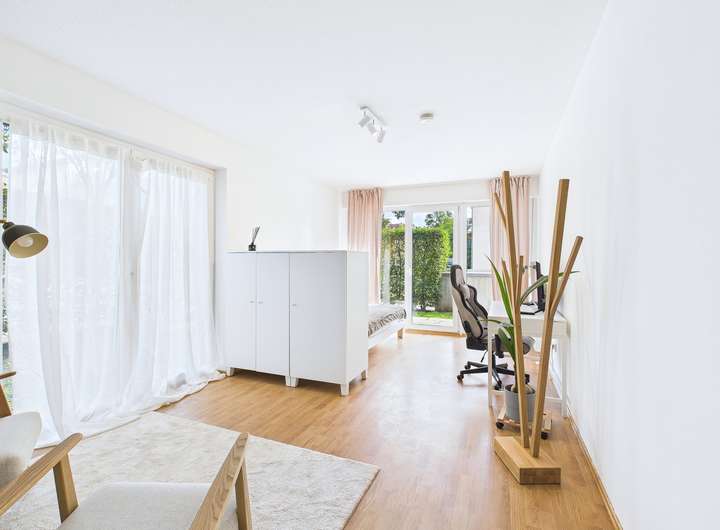 * Heller Wohn- und Schlafbereich mit Zugang zur Terrasse