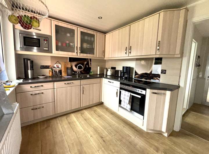 - Küche mit passgenauer Einbauküche und Zugang zu kleinem Keller