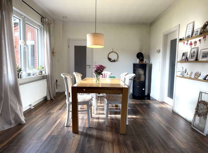 - großflächiger Wohn- und Essbereich mit Kaminofen (2023)