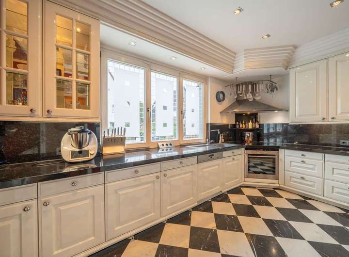 – Küche: Granitarbeitsplatten, Marmorfußboden