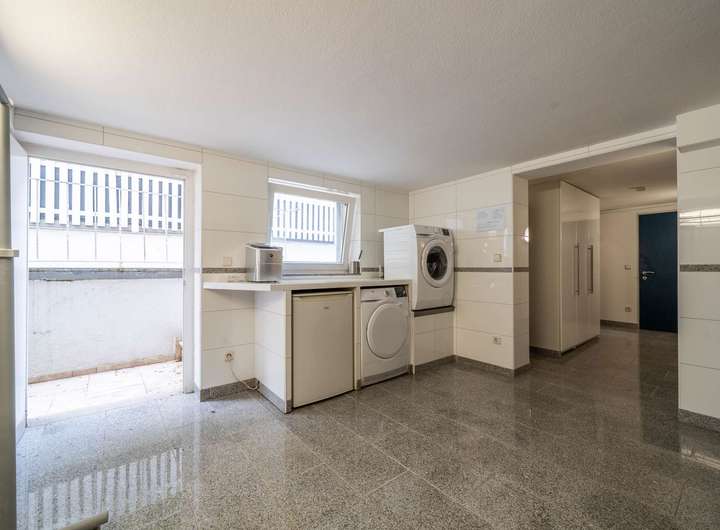 Das Kellergeschoss bietet zwei Vorratsräume, eine große Waschküche sowie ein Badezimmer mit Dusche.