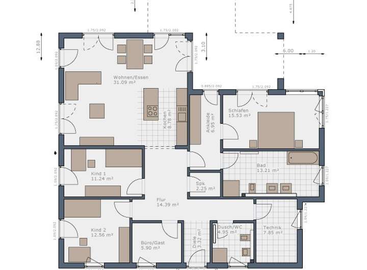 Anbauteile, Carport, Garage und Keller können Extras sein, die als Sonderausstattung angeboten werden. Abbildungen, Grundrisse und Flächenangaben sind beispielhaft und können Extras zeigen. Flächenangaben nach DIN 277.
