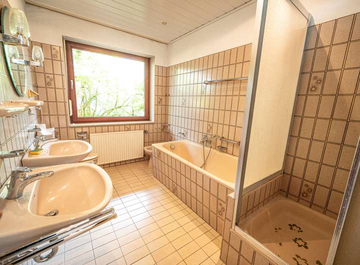Dieses großzügige Ein- bis Zweifamilienhaus aus dem Jahr 1979 überzeugt durch seine massive Bauweise, die vielseitigen Nutzungsmöglichkeiten und das einmalige Grundstück. Auf rund 218 m² Wohnfläche verteilen sich elf Zimmer, darunter vier Schlafzimmer, drei Bäder sowie zwei Balkone und eine sonnige Terrasse. Damit bietet das Haus nicht nur Platz für die klassische Familie, sondern auch ideale Voraussetzungen für Mehrgenerationenwohnen oder die Kombination von Wohnen und Arbeiten.