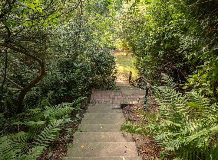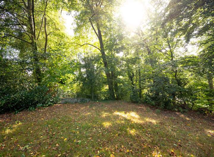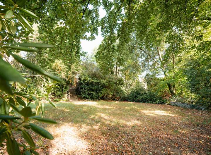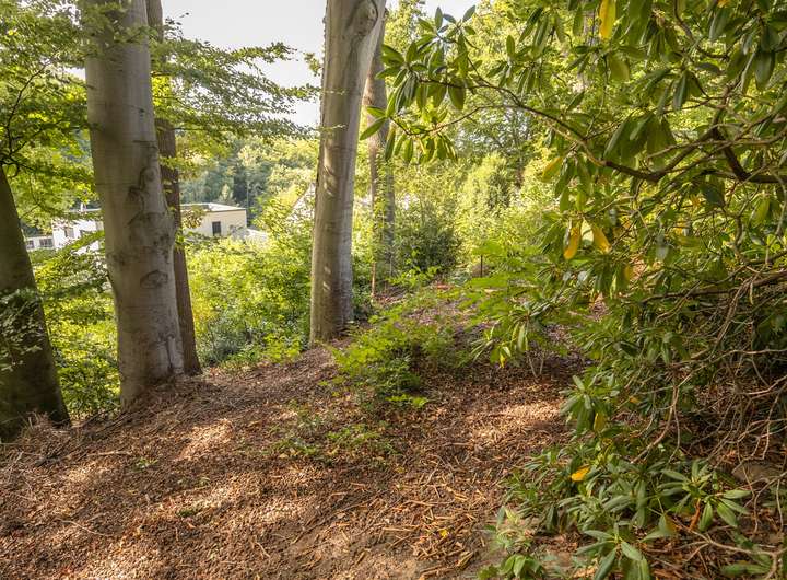Das großzügige Grundstück besticht durch seine Hanglage, die große Rasenfläche, altem Baumbestand und das eigene Waldstück. Diese Kombination bietet Naturerlebnis und Platz für individuelle Gestaltung und verbindet Wohnen im Grünen mit optimaler Erreichbarkeit.