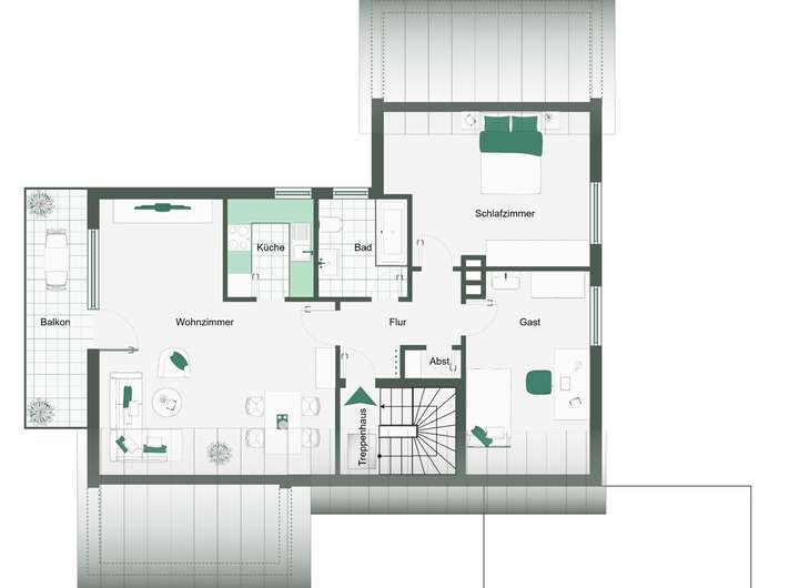 Die oberste Geschossdecke ist gedämmt und das Dach verfügt über eine hochwertige Zwischensparrendämmung. Der Dachstuhl und die Balkenlage befinden sich in einem sehr guten Zustand. Diese Gegebenheiten bilden eine ausgezeichnete Basis für eine energetische Sanierung, sodass sich die Immobilie problemlos an moderne Standards anpassen lässt.