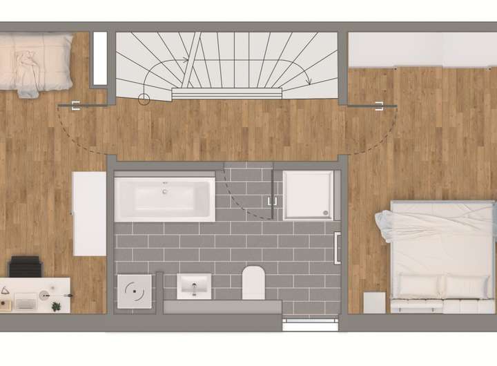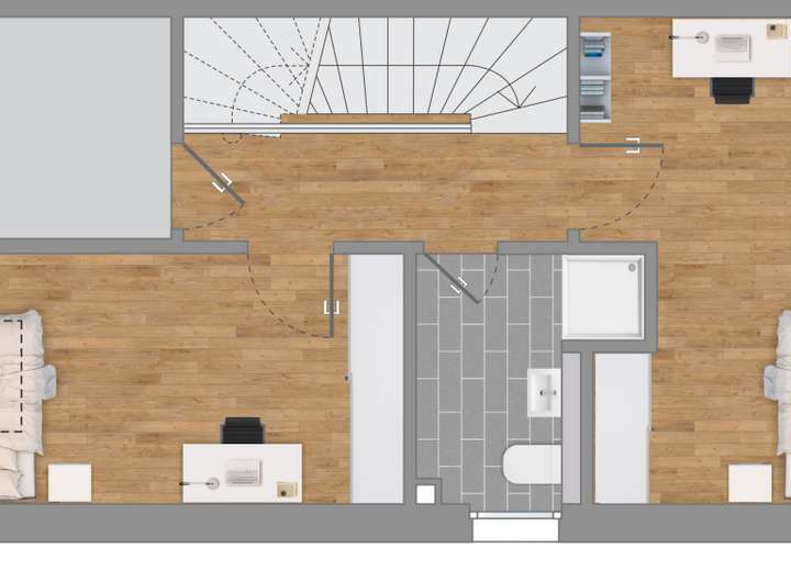 Der Abstellraum im Dachgeschoss kann als Sonderwunsch zu einem 2. Bad umgebaut werden