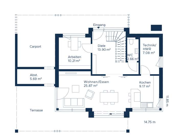 Bei dem hier beworbenen Angebot handelt es sich um eine Beispielbebauung ohne Grundstück und ohne Carport/Terrassenüberdachung !