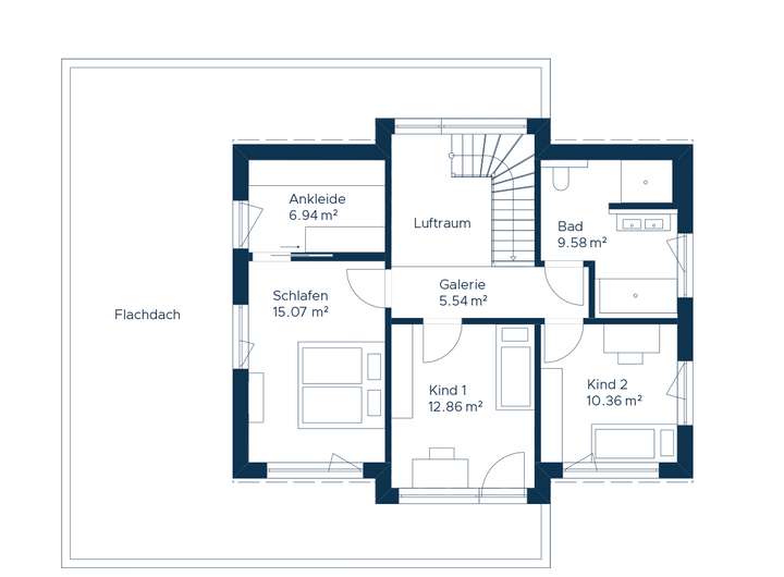 Im Obergeschoss, befindet sich ein großes Elternschlafzimmer und zwei Kinderzimmer, sowie das Bad mit Badewanne, Waschbecken, WC und WM Anschluss. Hochwertige Materialien und ausgewählte Markenprodukte sorgen für höchstes Wohnvergnügen.