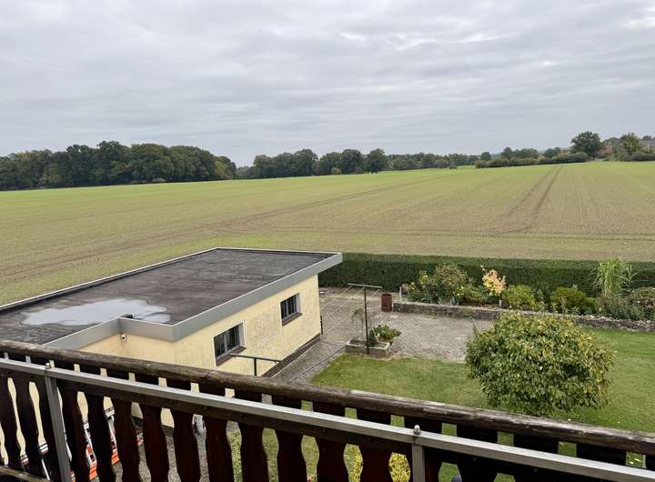 Dieses charmante Einfamilienhaus überzeugt durch seine besondere Lage mit einer wunderschönen Aussicht auf die umliegenden Felder – ideal für alle, die Ruhe und Natur schätzen. Mit insgesamt 4 Zimmern bietet die Immobilie genügend Platz für Familien oder Paare mit Anspruch an Komfort und Wohnqualität. Ein gemütlicher Kamin im Wohnbereich sorgt für eine warme Atmosphäre in den Wintermonaten. Der Vollkeller bietet zusätzliche Nutzfläche, Stauraum oder Platz für Hobby und Freizeitgestaltung. Das Haus kombiniert behagliches Wohnen mit praktischer Raumaufteilung und einem einzigartigen Blick ins Grüne – ein echtes Zuhause zum Wohlfühlen.