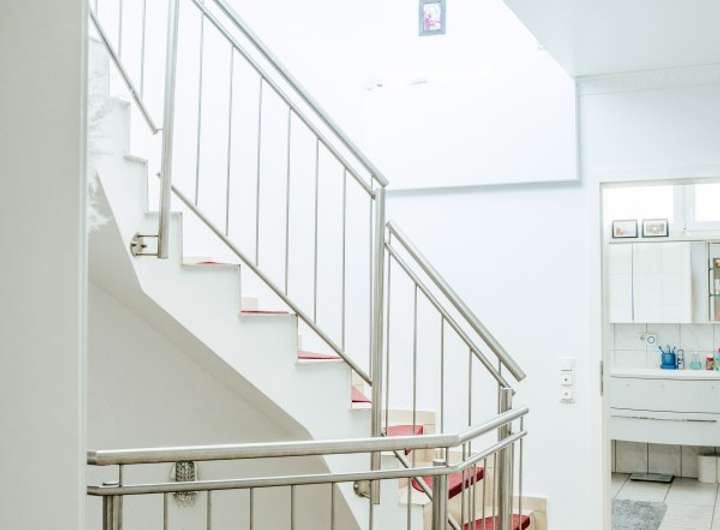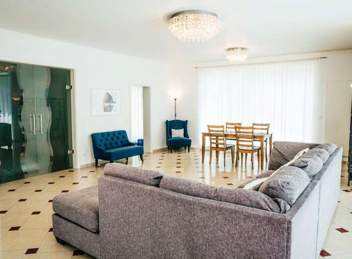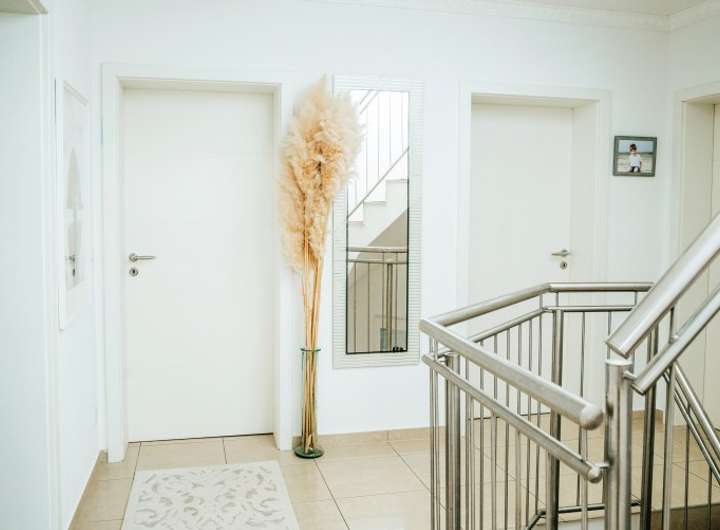 Bei diesem außergewöhnlichen Haus spürt man sofort das Wohngefühl einer Familie, die einen großzügigen Lebensmittelpunkt im Erdgeschoss kreiert hat. Dort befindet sich ein lichtdurchflutetes Wohnzimmer von ca. 50m², bodentiefe Fenster an dem halbrunden Erker zur Terrasse und eine Küche von ca. 20m². Die hochwertige Einbauküche würde ein Hobbykoch aufgrund der wertvollen Elemente beneiden. Im ersten Obergeschoss haben alle ihren eigenen großzügigen Bereich mit vier ca. 20m² großen Schlafzimmern. Dort befinden sich auch drei Balkone und ein Bad. Das elegante weiße Treppenhaus inmitten des Hauses führt zu einem Wintergarten und einer Dachterrasse von fast 40 m². Für den Gast oder ein Familienmitglied befindet sich im Erdgeschoss ein eigener Bereich mit eigenem Bad. Das individuelle Haus befindet sich in einer Anliegerstraße im oberen City-Ost. Die Anbindung zu den Autobahnen sowie zum Bahnhof sind schnell erreichbar.
