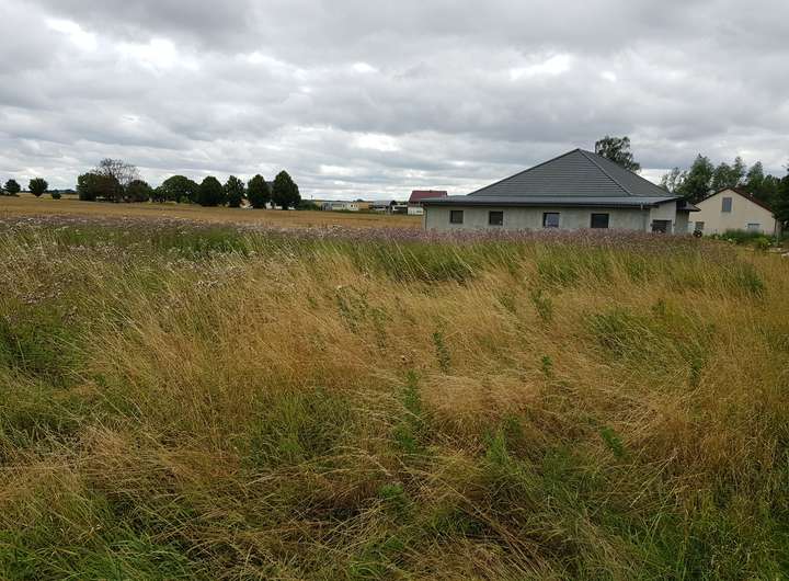 Bei dem Grundstück handelt es sich um eine derzeit nicht bebaute Wiese. Die umliegende Bebauung ist durch Einfamilienhäuser geprägt. Hinter dem Grundstück grenzt eine landwirtschaftlich genutzte Fläche an.