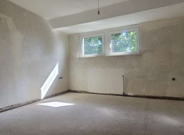 Direkt angrenzend eröffnet sich die zweite Haushälfte als echtes Gestaltungs-Highlight: Sie wurde bereits fachgerecht entkernt – die perfekte Grundlage, um sich hier mit wenig Aufwand ein modernes Zuhause ganz nach eigenen Vorstellungen zu schaffen. Vieles an Material ist bereits vorhanden und kann übernommen werden – das spart nicht nur Geld, sondern gibt kreativen Freiraum, ohne bei Null anfangen zu müssen. Ob offenes Raumkonzept, moderne Loftgestaltung oder großzügiges Atelier: Hier ist fast alles möglich – und der schwerste Teil ist schon getan.