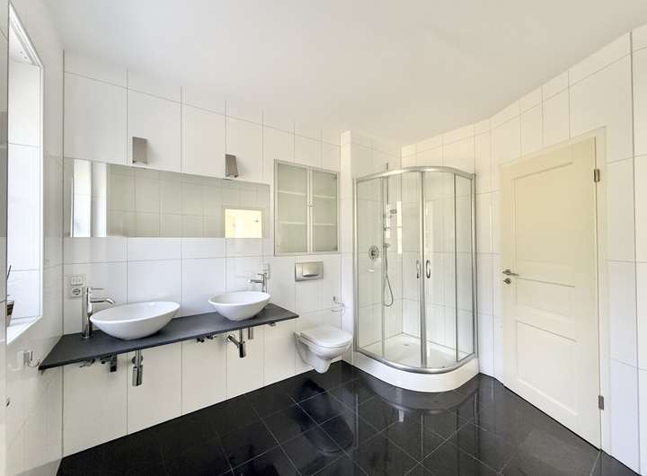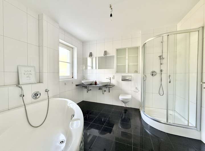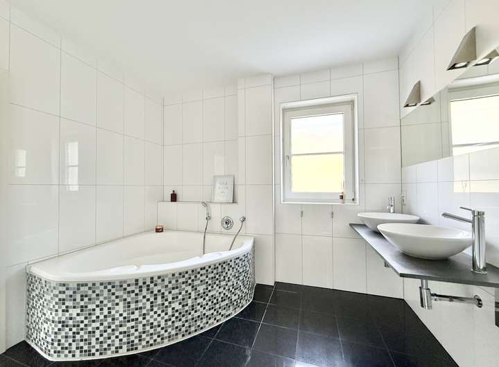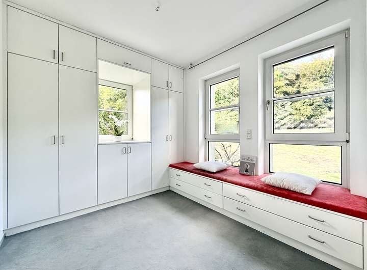 AUSSTATTUNG UND BESONDERHEITEN Erdgeschoss / Eingangsgeschoss - Flur mit Garderobenbereich - Gäste-WC mit Fenster - Großzügiger Essbereich - Offene Küche mit Kochinsel - Weiße moderne Einbauküche mit Granitplatte - Bodentiefe große Fensterfront - Bodenbelag: große helle Fliesen - Fussbodenheizung - Weiße Marmortreppe - Elektrische Rollläden - Weiße doppelt verglaste Isolierfenster Split-Level-Erdgegeschoss: - Großer Wohnbereich mit Kamin - Bodenbelag: Parkett - Angrenzende Südterrasse mit - elektrischer Markise - Garten - Bodentiefe weiße Isolierfenster doppelverglast - Fussbodenheizung - Elektrische Rollläden Obergeschoss: - Zweiter lichtdurchfluteter Wohnbereich oder Bibliothek - Angrenzender Südbalkon - Parkett - Bodentiefe weiße Isolierfenster doppelverglast - Fussbodenheizung - Elektrische Rollläden Split-Level-Obergeschoss: - Elternetage - Großes Schlafzimmer Nr. 1 - Angrenzende Ankleide mit Einbauschränken - Großes Tageslichtbad en Suite mit Dusche und Eckbadewanne - Doppelwaschtisch mit Schieferplatte - Bodenbelag Bad: Granitfliesen - Flur - Fussbodenheizung - Elektrische Rollläden im Bad - Bodenbelag Schlafzimmer und Ankleide: Teppichboden Dachgeschoss: - Großes lichtdurchflutetes Kinderzimmer/Schlafzimmer Nr. 2 - tolle Deckenhöhe von über 4 m im Schlafzimmer Nr. 2 - Angrenzender Südbalkon mit Ausblick in die Natur - Eigenes WC mit Fenster - Flur - teilweise bodentiefe Fenster - Fussbodenheizung - Bodenbelag: Teppichboden Split-Level-Dachgeschoss: - Kinderzimmer/Schlafzimmer Nr. 3 - Kinderzimmer/Schlafzimmer Nr. 4 mit kleiner Galerie - Tageslichtduschbad en Suite - Finnische Trockensauna - Ausblick von beiden Räumen in die Natur - Flur - Fussbodenheizung - Bodenbelag: Teppichboden Untergeschoss: - große Diele mit Einbauschrank - Schlafzimmer Nr. 5 - Homeoffice oder Schlafzimmer Nr. 6 mit Downlights - Moderne Schrankwand im Homeoffice - Bodenbelag Homeoffice: Laminat - Bodenbelag Diele: Natursteinfliesen - Bodenbelag Schlafzimmer Nr. 5: Teppichboden - Fussbodenheizung - Kellerraum - Waschraum - Heizungsraum - Zugang zur Garage direkt vom Haus - Elektrisches Garagentor mit Handsender Außenbereich: - Terrasse zur Südseite - Rasenfläche - Pflanzenbeete rund um das Objekt - Gartenhaus - Zusätzlicher eigener Eingang zum Untergeschoss - 1 Stellplatz vor der Garage - Glasfaser liegt in der Straße - Komplett neu gestrichene Fassade September 2025 - Nordseite ca. 15 cm gedämmt, Fertigstellung Ende Oktober 2025 Heizungsart und wesentlicher Energieträger: Gas Baujahr Brennwertheizung:: 1993 Energieausweis: - Endenergieverbrauch des Gebäudes 91,6 kWh - Energieeffizienzklasse C