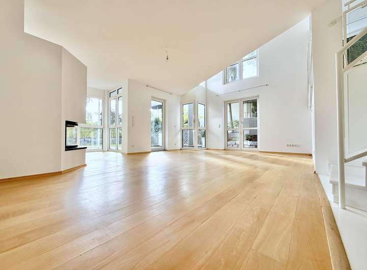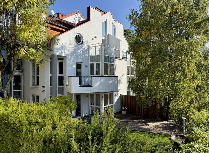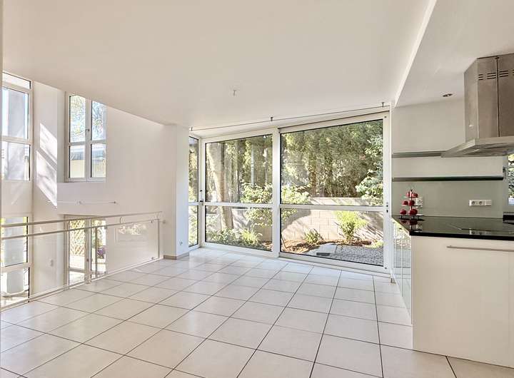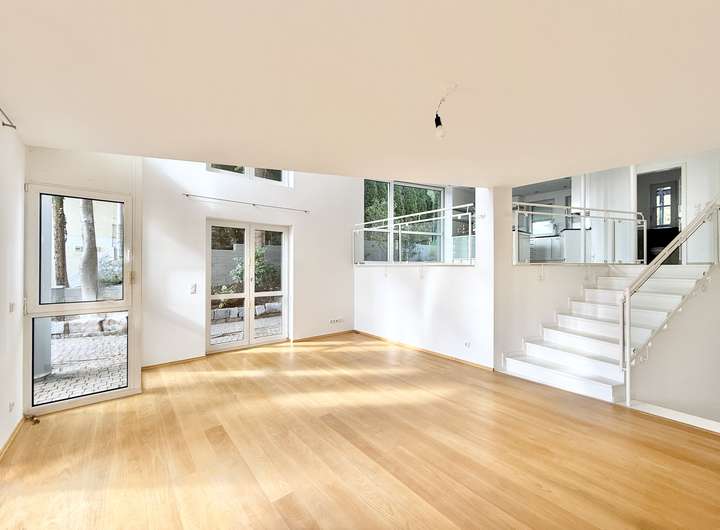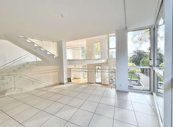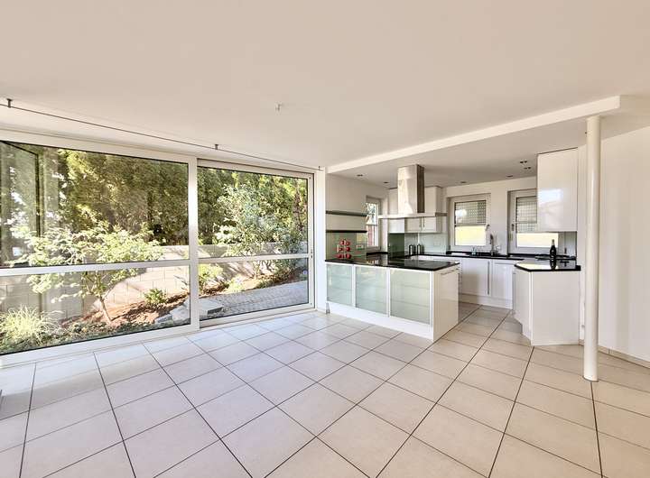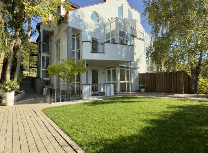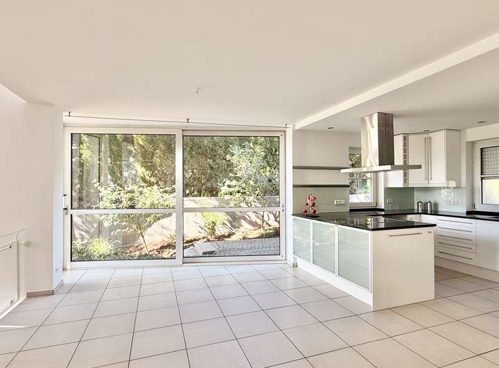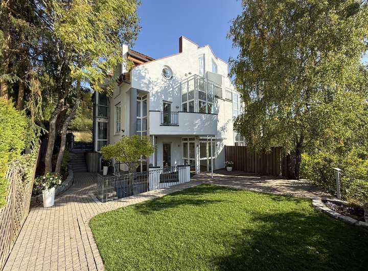 HIER VEREINEN SICH PURE LEBENSQUALITÄT MIT AUSGEFALLENER ARCHITEKTUR, IN SYMBIOSE MIT DER NATUR! Diese Doppelhaushälfe wurde 1993 in massiver Bauweise und moderner Split-Level- Architektur auf einem tollen Grundstück am Waldrand, in einer Toplage von Georgenborn, im ehemaligen Schlosspark erbaut. Diese Immobilie lässt in puncto Wohnkomfort und Ausblick in die umliegende Natur keine Wünsche offen, und bietet ein großzügiges individuelles Wohnkonzept z. B. für eine Familie mit drei bis vier Kindern, die zusätzlich ein großes Homeoffice benötigt, oder im Gartengeschoss mit eigenem Eingang ein Au-pair unterbringen möchte. Eine große Waldwiese, auf der morgens und abends die Rehe zu beobachten sind sowie der angrenzende Wald sind direkt vom Garten zu erreichen. In dieser Wohnlage können Kinder in einer gepflegten, naturverbundenen und kinderfreundlichen Umgebung glücklich aufwachsen. Schon beim Betreten des Hauses, mit seinem hellen Entrée, den großartigen Lichtverhältnissen durch die zahlreichen bodentiefen Fenster und den Ausblick ins Grüne, stellt sich ein Urlaubsfeeling mit hoher Lebensqualität ein, was auch mit dem harmonischen Wohnambiente des Hauses zusammenhängt. Diese attraktive Immobilie erstreckt sich über mehrere Wohnebenen, die einer Familie ein hohes Maß an Privatsphäre bieten. Das Eingangsgeschoss verfügt über eine moderne offen gestaltete Küche, mit einer Kochinsel und einem großzügigen Essbereich sowie einem Gäste-WC und einem Flur, in dem die Garderobe Ihren Platz findet. Über eine weiße Marmortreppe gelangt man in den großzügigen Wohnbereich mit einem Kamin und Zugang zur Südterrasse und den Garten. Die wenigen Stufen vom Eingangsbereich entfernt, führen in einen zweiten lichtdurchfluteten Wohnbereich, den man auch hervorragend als Bibliothek nutzen kann. An diesen Raum grenzt ein Südbalkon an, der in den Sommermonaten zum ausspannen einlädt. Über die breite Marmortreppe mit Glaselementen, die gleichermaßen als Stilelement im ganzen Haus fungiert, gelangt man in das Ober- und Dachgeschoss, indem sich der private Bereich der Familie befindet. Im Obergeschoss findet man unter anderem das Elternschlafzimmer mit angrenzender Ankleide und großem Tageslichtbad en Suite, inklusive einer Eckbadewanne und einer Dusche. Wenige Stufen höher geht es in ein wunderschönes Kinderzimmer mit interessanten Lichtverhältnissen, eigenem Südbalkon mit zauberhaftem Ausblick und einem WC. Im Dachgeschoss befinden sich zwei weitere Schlaf- bzw. Kinderzimmer. Eines davon verfügt über ein Tageslichtduschbad en Suite und zum Relaxen eine finnische Trockensauna. Das Untergeschoss des Hauses, mit einem zusätzlichen Eingang, verfügt über zwei weitere Räume, die sowohl als Schlafräume, als auch als Homeoffice genutzt werden können. Ein drittes Duschbad steht ebenso im Untergeschoss zur Verfügung. Ein großer freundlicher Flur mit einem Einbauschrank bietet viel Staufläche. Des Weiteren sind im Untergeschoss ein Keller-, ein Wasch- und der Heizungsraum zu finden. Ein besonderes Highlight stellt die Garage, mit direktem Zugang über das Untergeschoss dar. Vor der Garage befindet sich ein zusätzlicher Außenstellplatz. Der energetische Verbrauchswert dieser Immobilie entspricht der Energieeffizienzklasse C. Aktuell wird die Nordseite des Hauses gedämmt (Fertigstellung Oktober 2025), was zukunftsorientiert die Heizkosten für dieses Objekt weiter senken wird. Das Haus verfügt über eine Fussbodenheizung, was perspektivisch gesehen mehrere Heizmöglichkeiten zulässt. Die komplette Fassade wurde neu angelegt, Fertigstellung Ende Oktober 2025. Diese großzügige Doppelhaushälfte ist ein wirkliches Unikat und bietet viel Raum für Ihre Wohnträume sowie die Möglichkeit Ihre individuellen Lebensstile zu entfalten.