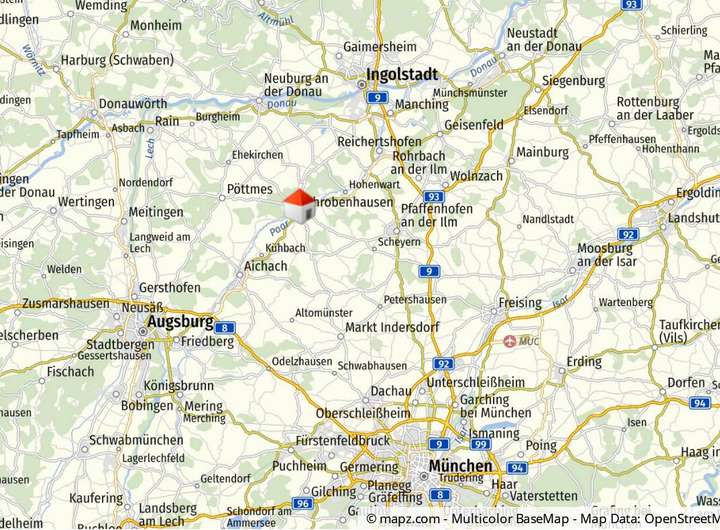 Die nahegelegene Bundesstraße 300 verbindet die Stadt effizient mit den Autobahnen A8 (München-Stuttgart) über Dasing (ca. 26km Entfernung) und A9 (München-Nürnberg) über Langenbruck (ca. 27km Entfernung).