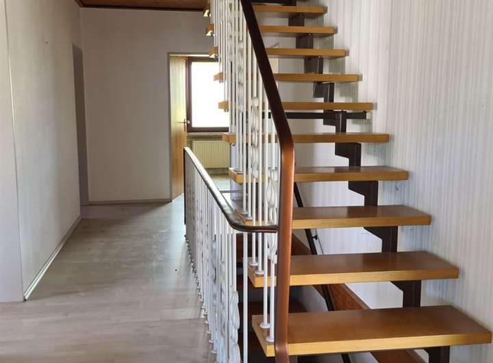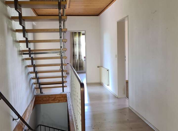 Flur mit Terrassenzugang sowie Treppenabgang ins Kellergeschoss und Treppenaufgang ins Dachgeschoss (nicht ausgebauter Bodenraum)