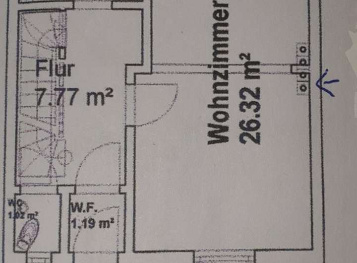 geräumiges Wohnzimmer, Küche, WC und Flur