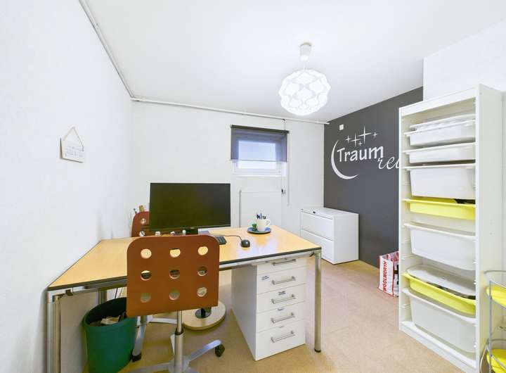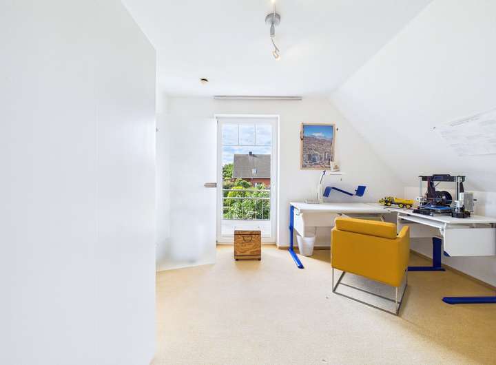 Dieses großzügige Einfamilienhaus überzeugt mit etwa 160 m² und einem weitläufigen Grundstück von rund 801 m² und bietet damit viel Platz für die ganze Familie. Dank der durchdachten Raumaufteilung, der hellen Zimmer und der zahlreichen Ausstattungs-Highlights ist es ein Zuhause, das sowohl Komfort als auch Wohnqualität vereint. Über den Eingangsbereich im Erdgeschoss gelangen Sie in den großzügigen Wohn- und Essbereich mit offener Küche. Große Fensterfronten sorgen hier für viel Licht und den direkten Blick in den Garten, der von Nachbarn nicht einsehbar ist. Die besonders gemütliche Atmosphäre rundet der Kamin im Wohn- und Essbereich ab. Das Obergeschoss umfasst das Hauptschlafzimmer mit Bad en suite, zwei weitere Schlafzimmer sowie ein zusätzliches Badezimmer. Der Balkon mit Süd-Ausrichtung ergänzt den Wohnkomfort. Im Dachgeschoss finden Sie ein weiteres Zimmer mit großen Fensterfronten, das sich ideal als Kinderzimmer, Gästezimmer oder Homeoffice-Büro eignet. Zusätzlichen Platz bietet das Untergeschoss: Hier befinden sich die Sauna, ein Duschbad sowie zwei weitere Zimmer, welche derzeit als Gäste- und Schlafraum genutzt werden. Damit stehen Ihnen insgesamt bis zu sechs nutzbare Schlaf-/ Kinder- oder Arbeitszimmer zur Verfügung. Das besondere Highlight dieser Immobilie ist nicht nur die große Terrasse, sondern vor allem der mit einer Wärmepumpe beheizte Außenpool. Anschließend können Sie den Tag in der Sauna oder vor dem Kamin ausklingen lassen. Dieses Haus umfasst eine Vielzahl an weiteren modernen Ausstattungsmerkmalen, wie eine Lüftungsanlage, die das klassische Fensterlüften überflüssig macht, eine Photovoltaikanlage mit 10 kWh Speicher sowie eine Wallbox. Abgerundet wird das Angebot durch eine große Garage, einen überdachten Stellplatz sowie die ruhige Lage in einem gewachsenen Wohngebiet mit guter Anbindung. Das Haus wurde regelmäßig instand gehalten, präsentiert sich in einem sehr gepflegten Zustand und ist nach Absprache bezugsfrei. Insgesamt handelt es sich um ein hochwertig ausgestattetes Einfamilienhaus mit viel Platz, modernen Extras und einem traumhaften Garten – ideal für Familien, die ein bezugsfertiges Zuhause suchen.