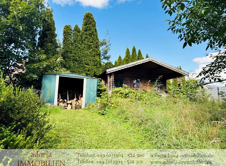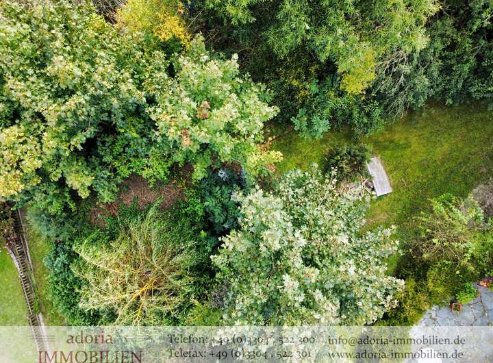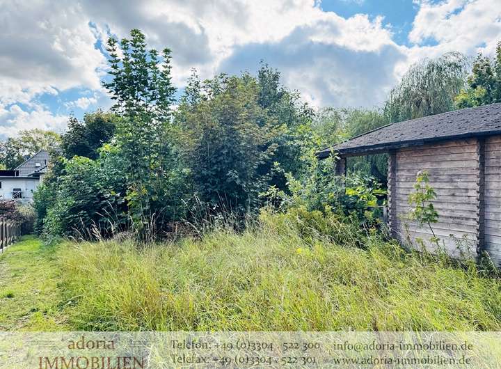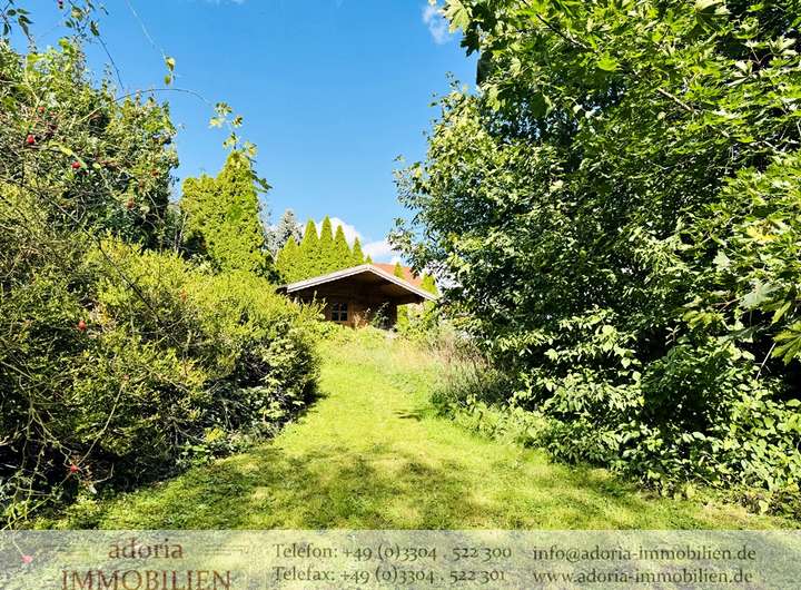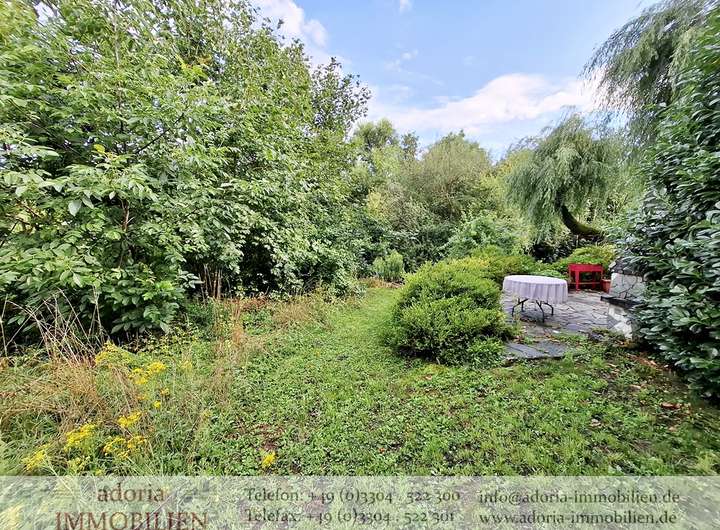 Auf dem mit vielen Sträuchern bewachsenen Grundstück wurde vor Jahren ein Gartenhäuschen errichtet, welches vom Käufer gerne mit übernommen werden kann. Ein Regenwasserteich am hinteren Ende des Grundstücks ist eine weitere besondere Eigenschaft.