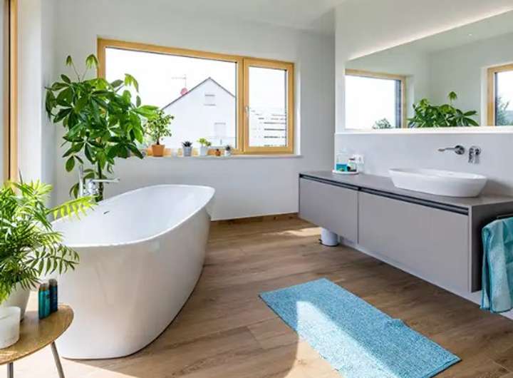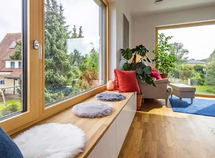 − Exzellentes Raumklima durch diffusionsoffenen Wandaufbau, entwickelt mit dem Fraunhofer Institut für Bauphysik