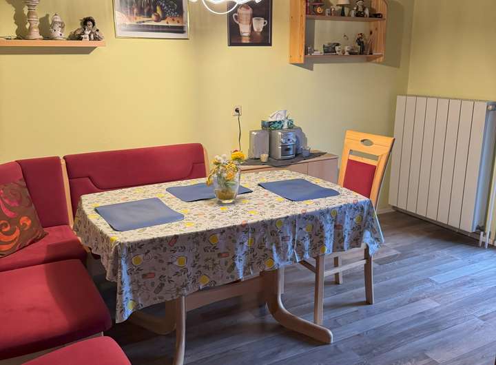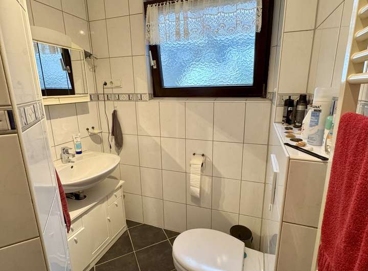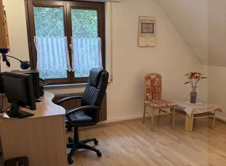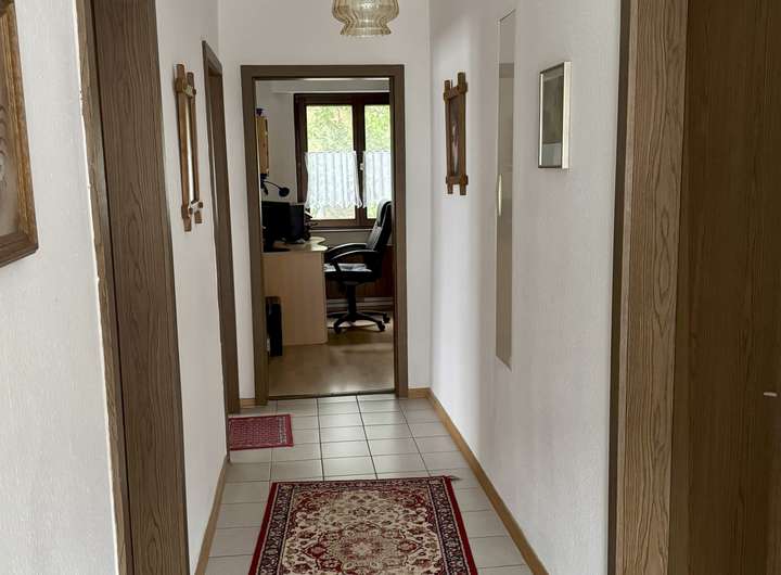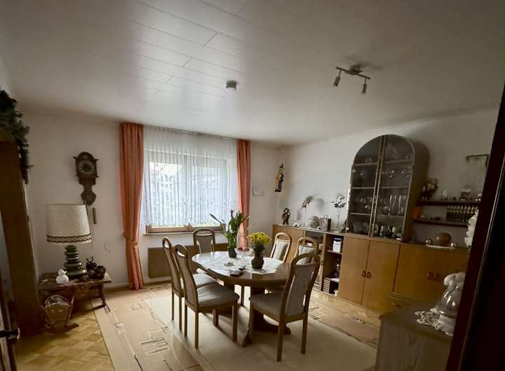 In mehreren Zimmern Echtparkett, Schieferdach, Bar im Keller. Die Garage ist eine hintereinanderliegende Doppelgarage. Vor der Garage ist ein weiterer Außenstellplatz vorhanden. Heizung wurde im Jahr 2024 erneuert. Die Küche ist Eigentum der Mieter.