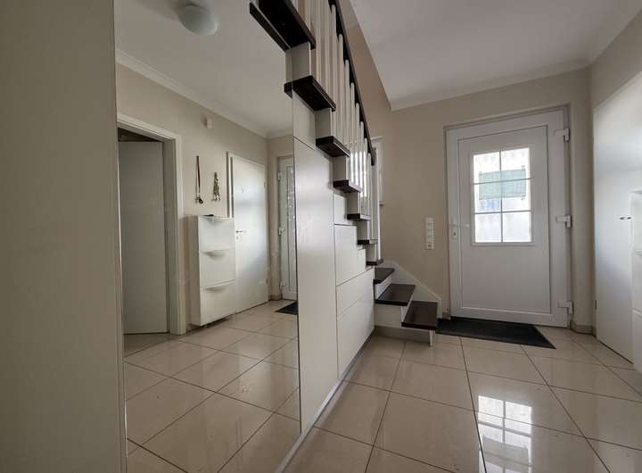 Neben zwei Badezimmern und einem separaten Gäste-WC zählen fünf hübsche Zimmer zu dem Haus. Viel Platz zum Gärtnern, Spielen oder Sonnenbaden. Auf den 767 Quadratmetern des dazugehörenden Grundstücks können Sie entspannen. Im Haus ist eine Einbauküche vorhanden, sodass Sie gewissermaßen sofort mit dem Kochen beginnen können. Ebenfalls zeitsparend ist die Doppelgarage für Ihr Auto. Geheizt wird das im Jahr 2006 gebaute Objekt mit einer Gasheizung. Die monatliche Miete für die Immobilie mit Grundstück beträgt 1.390 Euro.