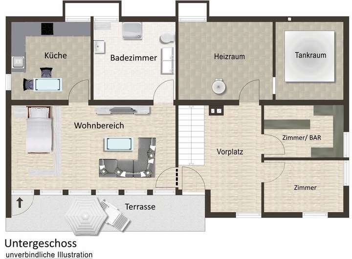 → Mehrere zusätzliche Räume im Untergeschoss