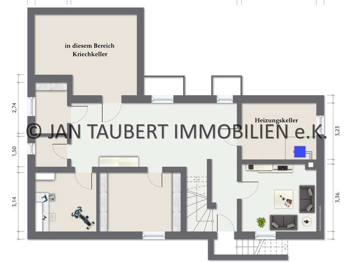nutzbare Abstell-/Hobbyräume, Flur (Tageslicht) mit Platz für Schränke, 1 großer Raum mit Tageslicht wohnlich ausgebaut,