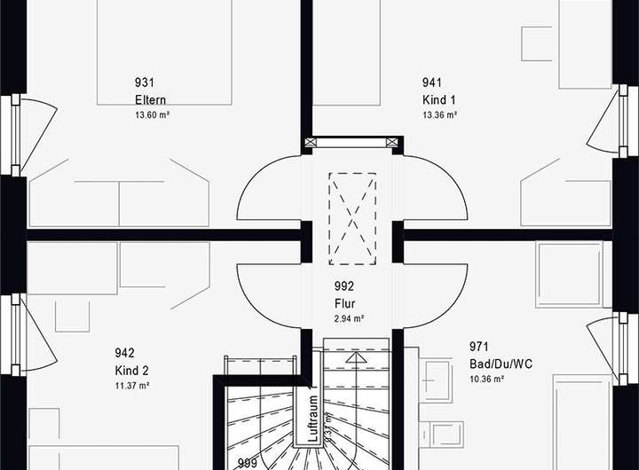 Puristisches Raumwunder auch für kompaktere Grundstücke: Unser Ausbauhaus TrendStyle 11.0 S hat zwei Wohnebenen mit einer Nettogrundfläche von 112,62 m² - inklusive des offenen Wohn-, Küchen- und Essbereichs und dreier Schlafzimmer. Extrahohe Decken und mehrere bodentiefe Fenster sorgen für Luft und Licht - ein wunderbarer Ort zum Entspannen, Lachen, Leben.