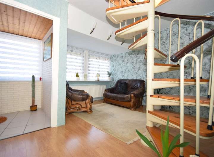 Zum Verkauf steht eine Doppelhaushälfte aus dem Ursprungsbaujahr 1976, welches im Jahre 2012 von Grund auf saniert wurde. Diese Immobilie befindet sich am Ende einer Sackgasse und verfügt über einen hohen Wohnwert. Zwei Garagen sind ebenfalls Bestandteil dieses Verkaufes. Auf insgesamt ca. 233m² Wohn- und Nutzfläche, inklusive Garagen und einem ca. 365m² großen Grundstück, bietet diese Immobilie alle Annehmlichkeiten eines schönen Wohnens. Die Immobilie ist wie folgt aufgeteilt: Betreten über einen Windfang erreicht man rechter Hand das großzügige Wohnzimmer, welches eine optimale Belichtung bietet. Angrenzende daran findet man die Küche mit einer Essecke. Die Einbauküche verfügt über Elektro-Einbaugeräte und die perfekte Ausstattung für die ambitionierten Hobbyköche*innen. Eine Essecke mit ausreichend Platz für die Familie lädt zum Entspannen und Verweilen ein. Ein Gäste-WC und der Ausgang zum Garten findet man ebenfalls im Erdgeschoss, sowie der Abgang in den Kellerbereich. Hier sind verschiedenen Räume untergebracht, welche sich in einem perfekten Pflegezustand befinden. Außerdem ist hier der Heizung- und Hauswirtschaftsraum untergebracht. Die Brennwerttherme ist aus dem Jahre 2021. Zurück im Erdgeschoss gelangt man über eine bequeme Treppe in das Dachgeschoss dieser gepflegten Immobilie. Hier befinden sich drei Zimmer zur individuellen Verwendung sowie das Badezimmer mit Dusche und Badewanne. Eine großzügiger Flurbereich bietet den Aufgang in den ausgebauten Spitzboden. Hier ist ein weiteres Zimmer untergebracht. Diese gemütliche Doppelhaushälfte mit ihren hochwertigen Ausstattungsmerkmalen, dem ausgebautem Spitzboden ist ideal für anspruchsvolle Käufer, die nach einem stilvollen und komfortablen zuhause suchen. Der charmante Grundriss, die durchdachte Raumaufteilung machen dieses Haus zu einer attraktiven Option für Familien oder Paare, die ein harmonisches Wohnambiente schätzen.