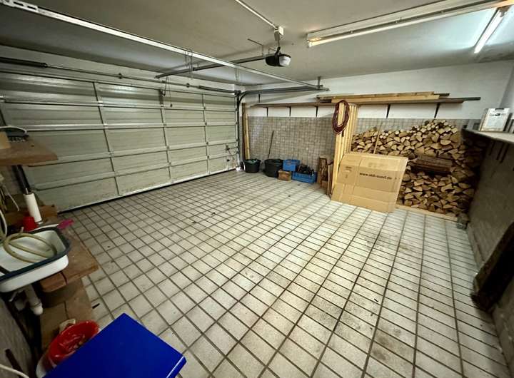 Die Teilunterkellerung eröffnet zahlreiche Möglichkeiten. Neben dem Heizungsraum mit Öllager stehen großzügige Flächen für Hobby, Heimwerken oder Lagerzwecke zur Verfügung. Ein direkter Zugang führt in die große Doppelgarage, die zusätzlichen Komfort und kurze Wege garantiert.