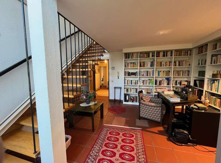 Das Haus ist auf zwei Etagen barrierearm. Ein Lift im Wintergarten verbindet das Erdgeschoss mit dem gut bewohnbaren Souterrain, in dem sich neben der Bibliothek des Wintergartens ein großes Badezimmer, ein Schrankraum und ein Schlafzimmer befinden.