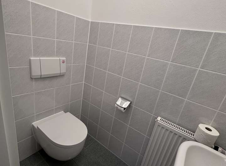 Aktuell befindet sich das Haus noch in Sanierung, alle Räume inklusive Treppenhaus werden frisch geweißelt. Auch werden noch feste Duschwände in den Badezimmern eingebaut.