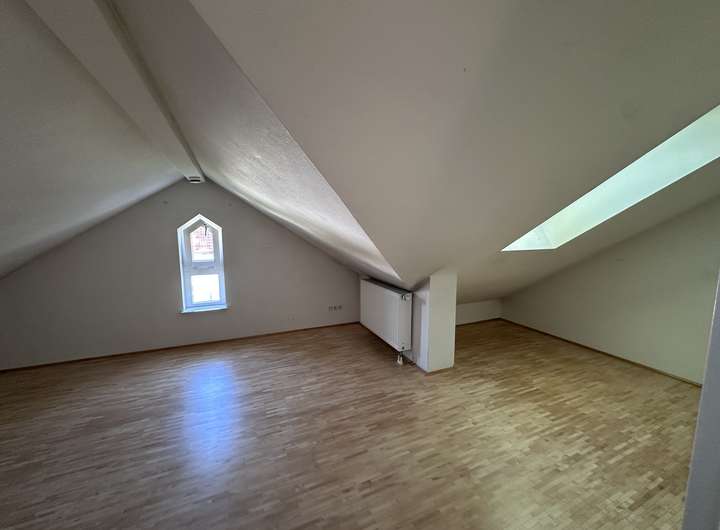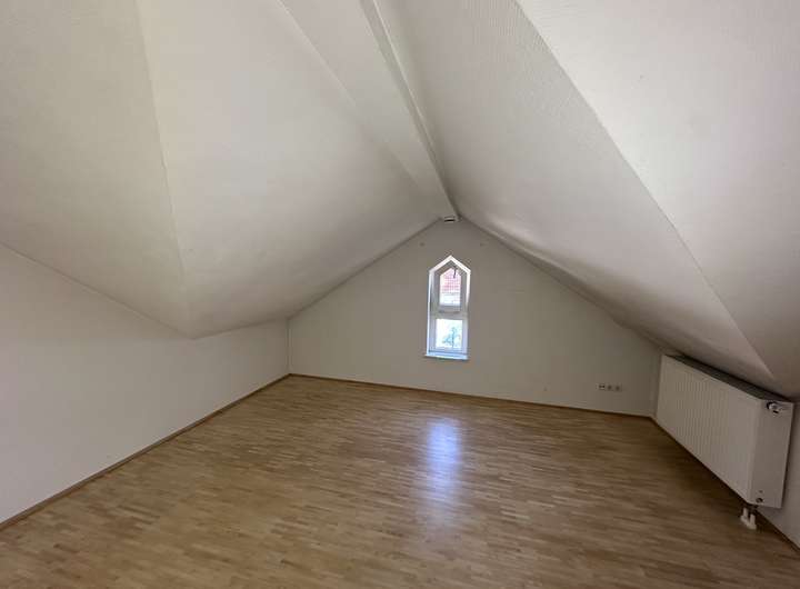 Im Erdgeschoss befindet sich der helle Wohn- und Essbereich mit Zugang zur sonnigen Terasse und in den Garten mit Gartenhaus. Die Einbauküche ist im Mietpreis inkludiert. Im Obergeschoss sind 3 Schlafzimmer, eines davon mit kleinem Balkon zum Garten. Der ausgebaute Speicher bietet zusätzlichen Wohnraum und ein eigenes Badezimmer mit Dusche.