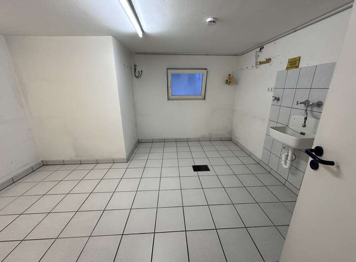 Im Keller findet sich ein großer Waschraum, ein Hobbyraum mit Teppich sowie eine Vorratskammer und Heizraum. Die Heizung wird über eine Wärmepumpe betrieben und die Warmwasseraufbereitung durch Solarthermie unterstützt. Dadurch erreicht es die Energieeffizienzklasse A. Eine Garage mit Stellplatz davor ist im Mietpreis inbegriffen.