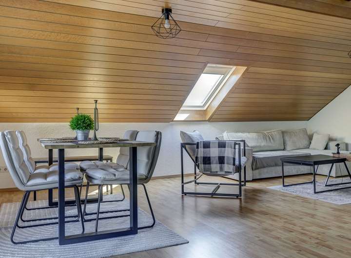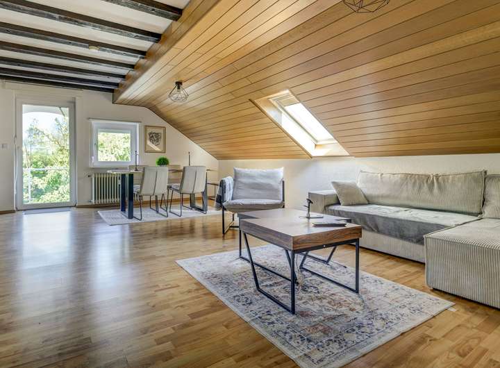 Dachgeschoss (DG): gemütliche 2-Zimmer-Wohnung (ca. 66 m²) mit Balkon.